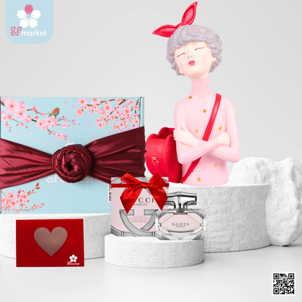 بكج هدية "سحر الأنوثة" من إس إف ماركت! تحتوي هذه الباقة الرائعة على بوكس فاخر يتضمن كرت الهدية، بالإضافة إلى عطر قوتشي بامبو الأصلي بحجم 75 مل وتحفة شكل بنت أنيقة.