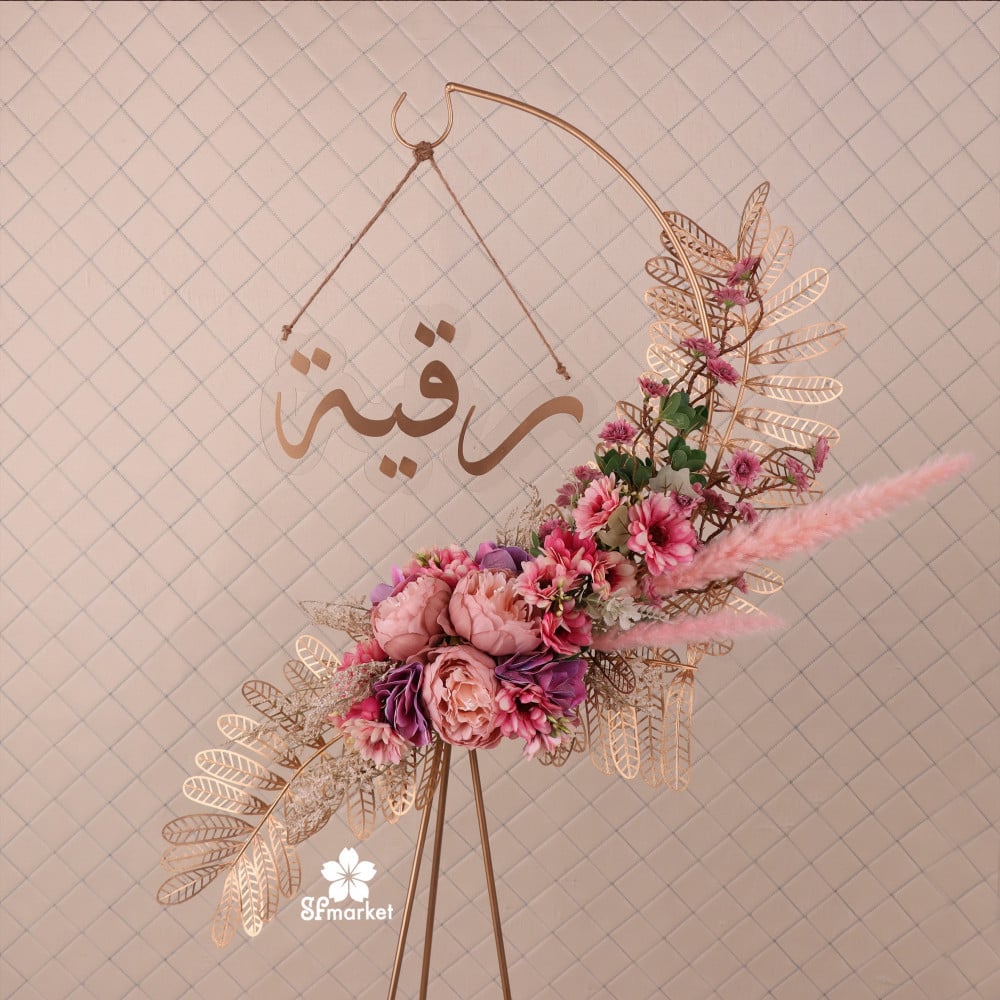 مواصفات استاند حديد 140 سم مع الورد والاسم