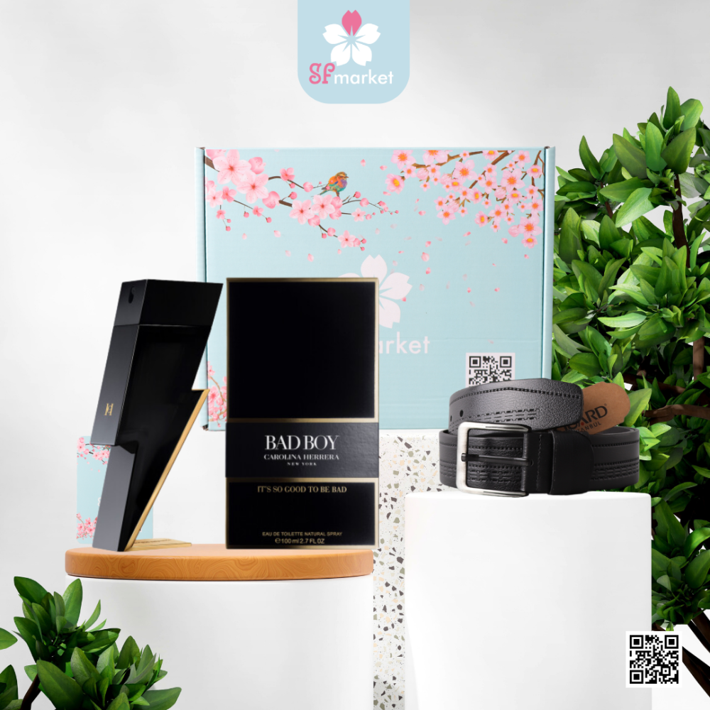 - عطر "BAD BOY" من كارولينا هيريرا (CAROLINA HERRERA): زجاجة عطر رجالي بتصميم جريء ومميز على شكل صاعقة باللون الأسود اللامع، بسعة 100 مل. تأتي العبوة مصاحبة لعلبتها السوداء الأنيقة التي تحمل اسم العطر "BAD BOY" وشعار كارولينا هيريرا، مع عبارة "IT'S SO GOOD TO BE BAD" مطبوعة بخط أنيق.